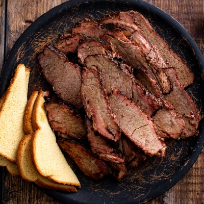 En snacks, destacan las famosas alitas estilo buffalo, los tacos tex-mex y el clásico chili con carne. Como platos fuertes, no puedes dejar de probar el brisket ahumado al estilo BBQ texano, las costillas a la parrilla y los mariscos frescos del Golfo.